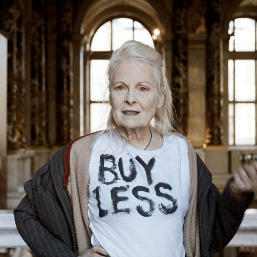 Luchadora por la libertad de expresión, la ecología y los derechos civiles, Vivienne Westwood fue una de las diseñadoras más comprometidas de la industria. Se la vio pronunciarse a favor de la independencia de Escocia, manifestarse por la libertad del ciberactivista Julian Assange y contra el gas de esquisto, y no dudó en utilizar la pasarela como medio de protesta. En febrero de 2019, en la Semana de la Moda de Londres, Vivienne Westwood presentó su colección en forma de manifiesto: lemas proeuropeos, pancartas a favor de la moda sostenible y activistas mezclados con las modelos sacudieron la asamblea presente. Pero no fue la única vez que Dame Vivienne Westwood hizo oír su voz y sus convicciones, ya que regularmente presentaba camisetas con lemas de protesta.