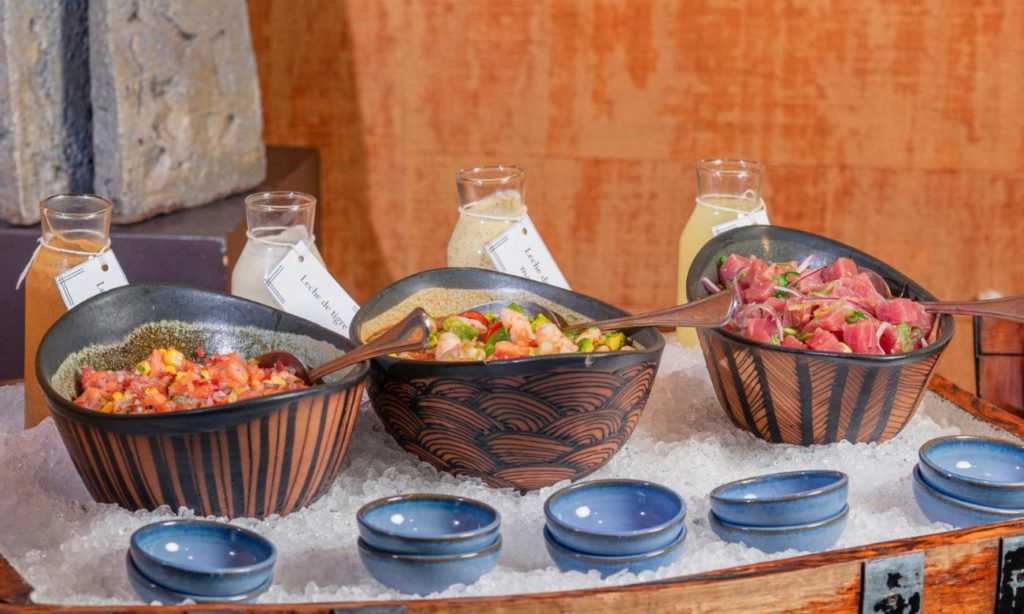 Entre las 13:00 y las 16:00 horas, los comensales pueden recorrer un completo buffet que incluye carnes, pescados y mariscos frescos, una barra de ensaladas, preparaciones clásicas de desayuno, postres de la Pastelería del hotel y un bar abierto con vinos, espumantes, spritz, pisco sour y bebidas sin alcohol.
