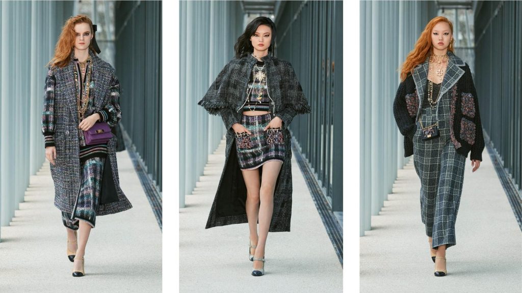 Es “muy metropolitano pero sofisticado”, explicó Virginie Viard. Con chaquetas de tweed con mangas de sudadera, bordados estilo graffiti en abalorios de colores, conjuntos cortos bermudas de punto voluminosos de punto morado y azul real y abrigos casuales abiertos. La combinación de los elementos tradicionales de la moda con nuevos detalles y formas contemporáneas de estilo permite a la directora creativa capturar perfectamente este momento en el tiempo.